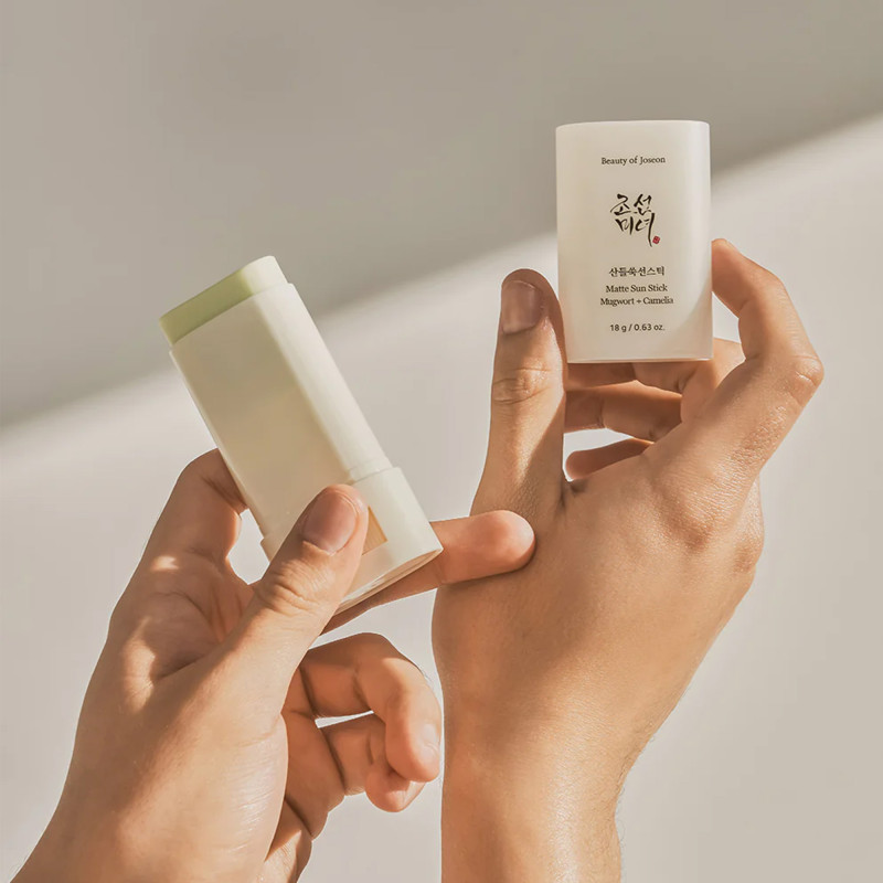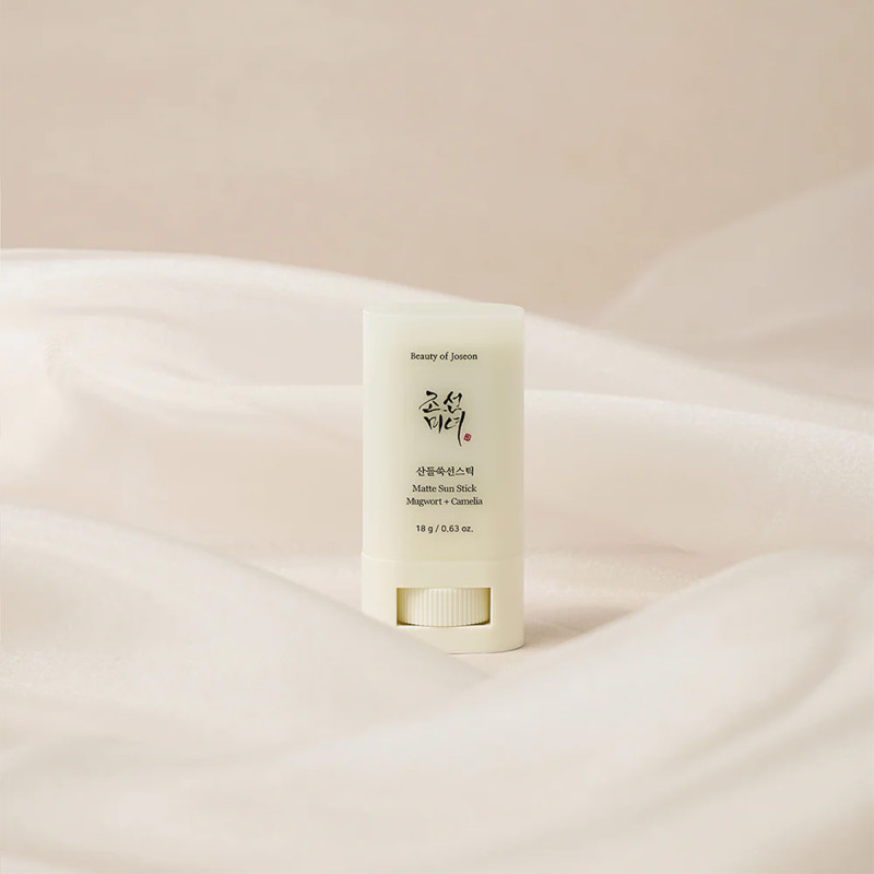 Le Stick Solaire Mat SPF 50+ Matte Sun Stick : Armoise + Camélia de Beauty of Joseon est conçu pour offrir une protection solaire pratique et efficace avec une finition mate. Enrichi en Armoise (Artemisia Capillaris) et extraits de camélia, ce stick solaire contrôle le sébum et garantit un effet lisse et non collant, parfait pour une application régulière, même par-dessus le maquillage.
