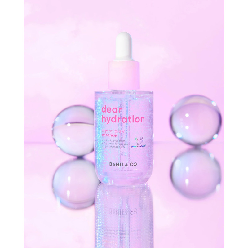 L'Essence Hydratante Cristal Glow Dear Hydration de Banila Co est conçue pour revitaliser et illuminer la peau, offrant une hydratation en profondeur et une préparation optimale pour les soins suivants.