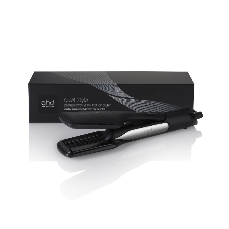 Le Duet Style noir de ghd est un lisseur séchant 2-en-1*. Il s'agit de LA révolution électro-beauté ! Cet appareil sèche et lisse simultanément les cheveux mouillés sans dommage thermique**.