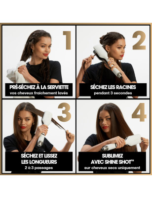 Enfin, il a le mode exclusif Shine Shot™ qui permet de transformer le Duet Style en un lisseur à la température optimale de 185°C. Ce mode s'utilise uniquement sur cheveux secs et ne souffle pas d'air.