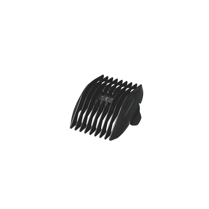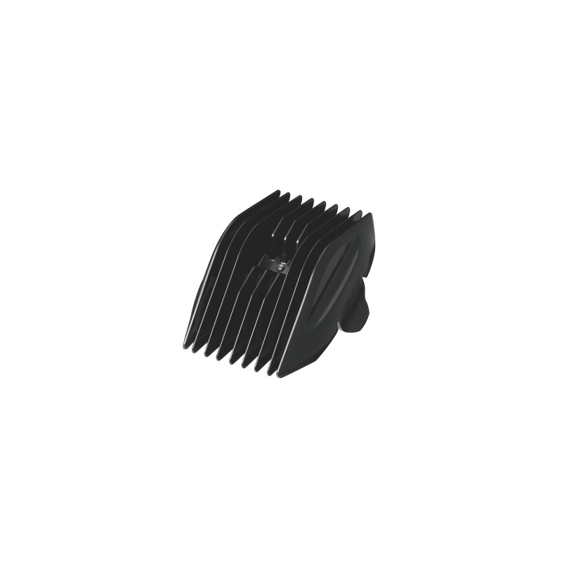 Enfin, elle est livrée avec 4 contre-peignes permettant de réaliser jusqu'à 8 longueurs de coupe différentes et 1 socle de charge.