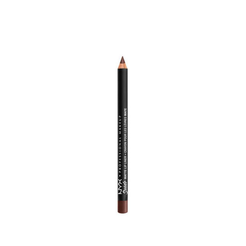 Le crayon à lèvres Suede Matte Lip Liner de NYX redéfinit le contour des lèvres et dépose un fini mat.