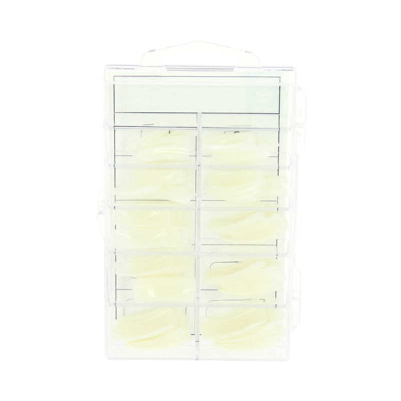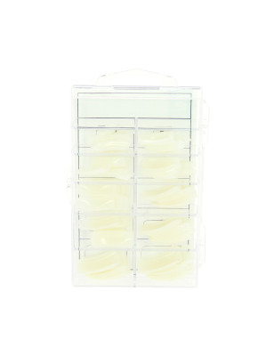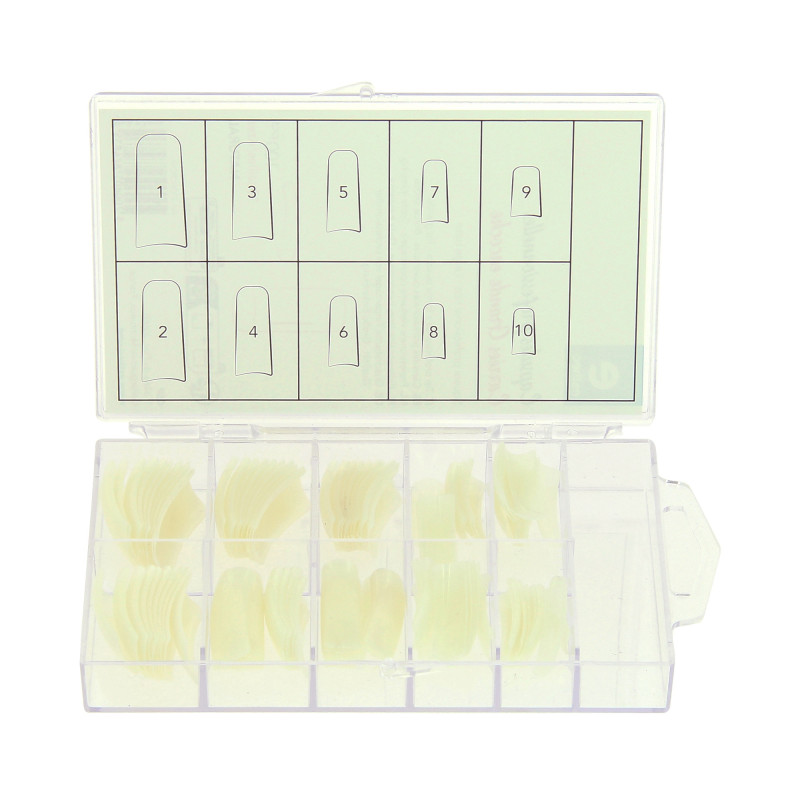 Le kit de 100 capsules professionnelles carrées grande encoche de Estheo s'adapte à tous les types d'ongles : plats, bombés, normaux, etc.