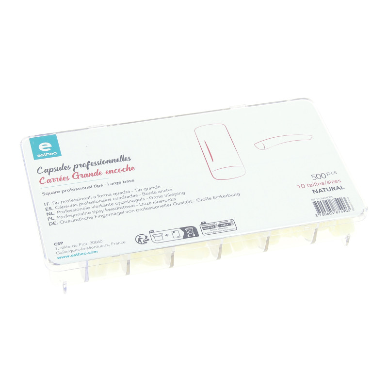 Les capsules professionnelles carrées grande encoche de Estheo sont idéales pour des ongles sophistiqués.