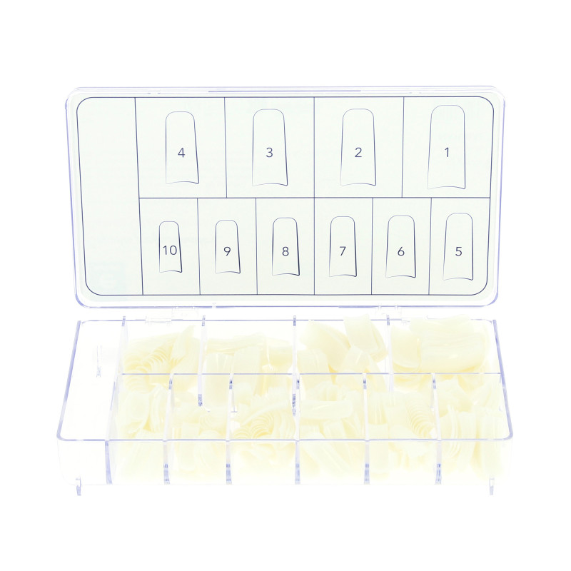 Le kit de 250 capsules professionnelles carrées grande encoche de Estheo s'adapte à tous les types d'ongles : plats, bombés, normaux, etc.
