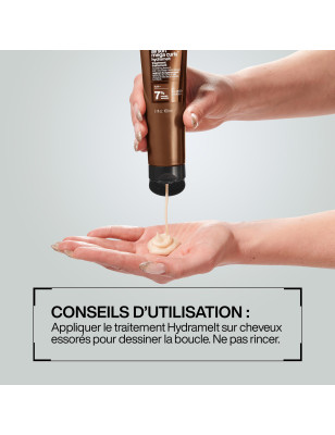 Le soin sans rinçage nourrissant Hydramelt hydrate, nourrit et définit les cheveux bouclés.