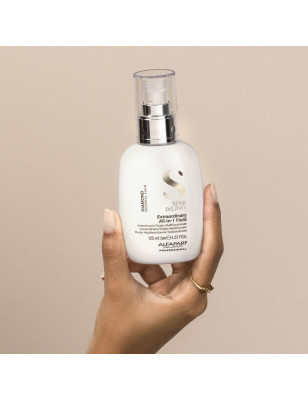 Le fluide sans rinçage All in one Diamond de la gamme Semi Di Lino de la marque Alfaparf est conçu pour les cheveux normaux.