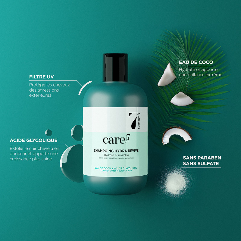 Revitalisez vos cheveux avec le Shampoing Hydra Revive de Care7, une formule innovante pour nettoyer, hydrater et revitaliser les cheveux normaux à secs, des racines aux pointes.