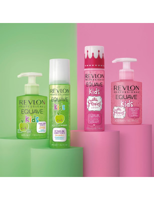 Le Soin Démêlant Instantané Pommes de la gamme Equave™ Kids de Revlon Professional démêle instantanément les cheveux des enfants, les hydrate et les protège. Ce spray sans rinçage au parfu
