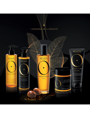 Le Masque capillaire Lumière Argan 250 ml de la gamme Orofluido™ de Revlon Professional nourrit et répare les cheveux tout en leur apportant une brillance écla