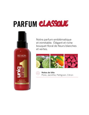 Le Spray 10-en-1 Parfum Classique de la gamme UniqOne™ de Revlon Professional offre 10 bénéfices en un seul geste pour des cheveux doux, brillants et protégés.