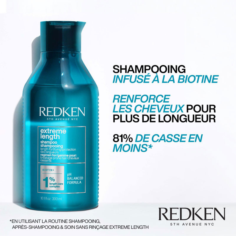 Le shampooing renforçant Extreme Lenght permet de nettoyer en douceur les cheveux tout en renforçant le cuir chevelu.