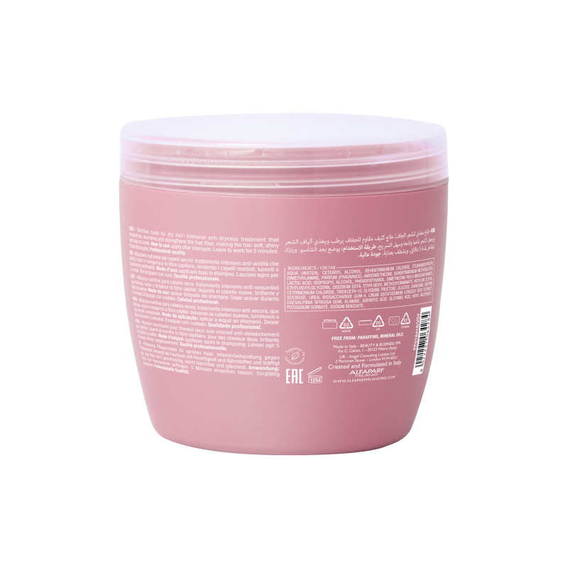 Le Moisture Nutritive Mask 500ml de la gamme Semi Di Lino de Alfaparf Milano est conçu pour les cheveux secs.